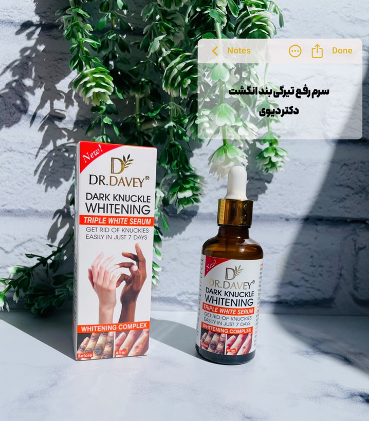 سرم سفیدکننده بند انگشت دکتر دیوی (Dr. Davey Dark Knuckle Whitening Triple White Serum) است سرم یکی از محصولات تخصصی برای رفع تیرگیهای موضعی پوست، بهویژه در ناحیه بند انگشتان، زانو، آرنج و قوزک پا میباشد.