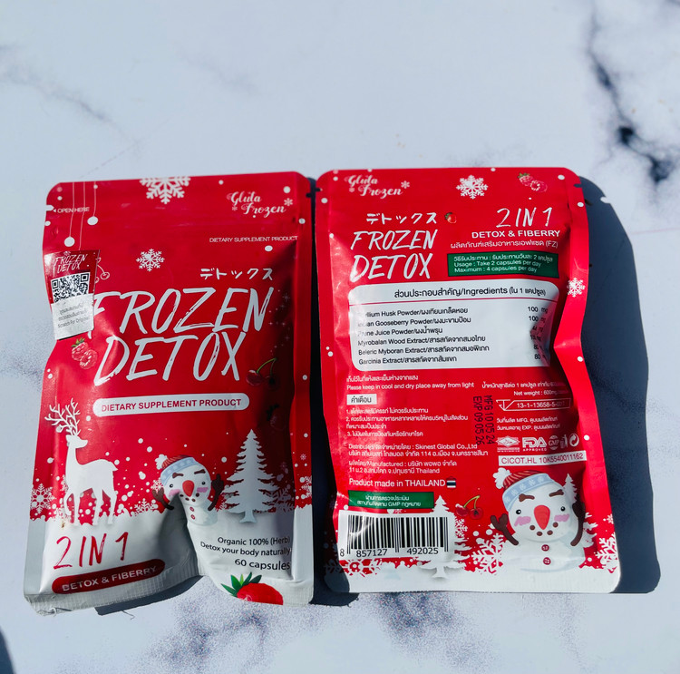 Frozen Detox یک مکمل گیاهی قدرتمند از تایلند هست که به طور طبیعی به سمزدایی بدن، بهبود گوارش، کاهش چربیهای اضافه و افزایش شفافیت پوست کمک میکنه.