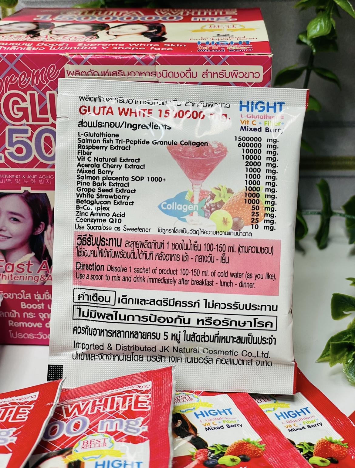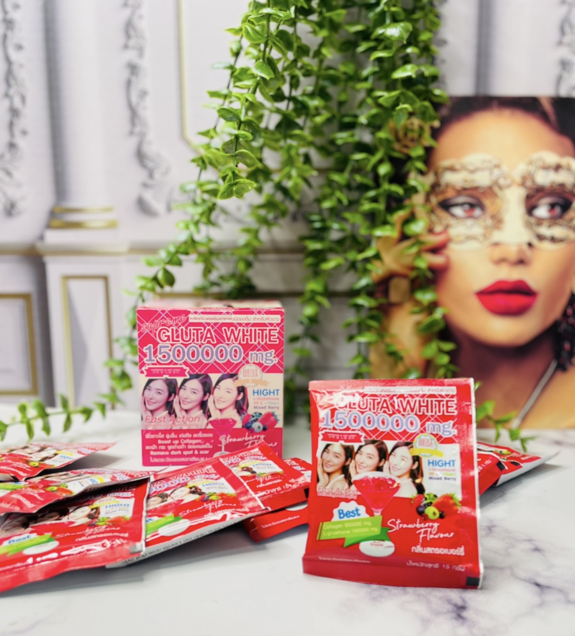 پودر نوشیدنی سفید کننده گلوتاتیون و کلاژن سوپر گلوتاوایت با طعم توت فرنگی حاوی ۱۰ساشه۱۵گرمی