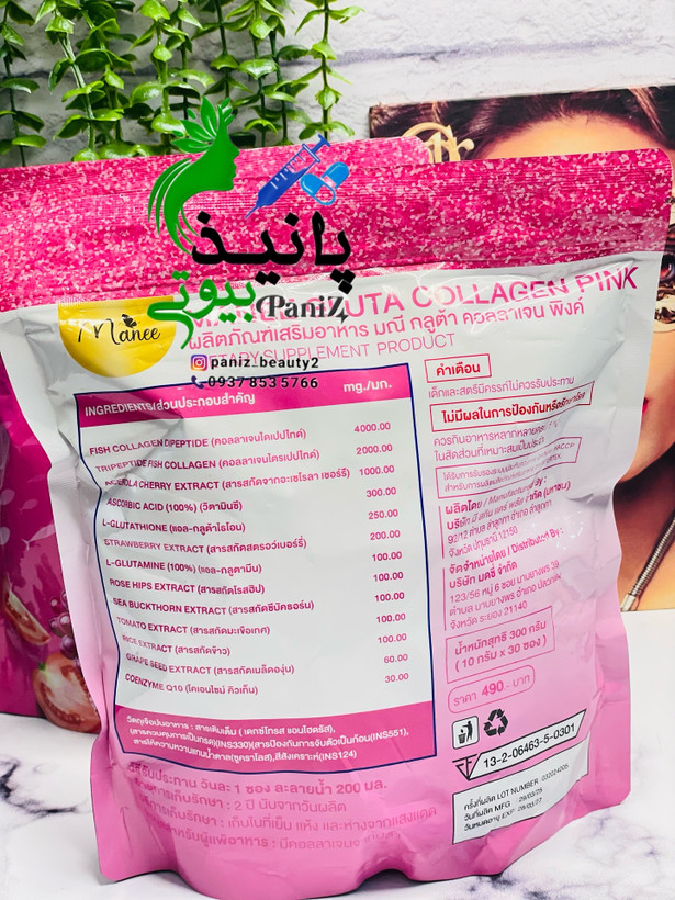 نوشیدنی سفید کننده قوی و جوانساز گلوتاتیون و کلاژن حاوی ۳۰ساشه ۱۰گرمی Manee Gluta Collagen Pink Juice