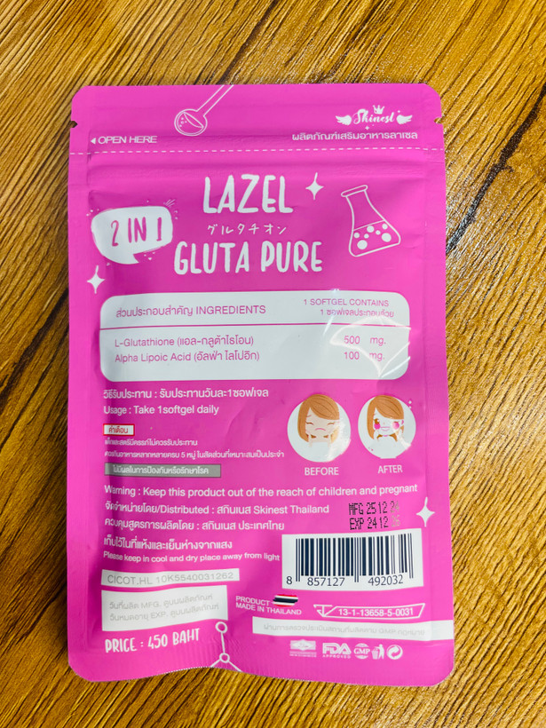 سفید کننده لزل Lazel gluta pure تایلندی اصل ۳۰عددی