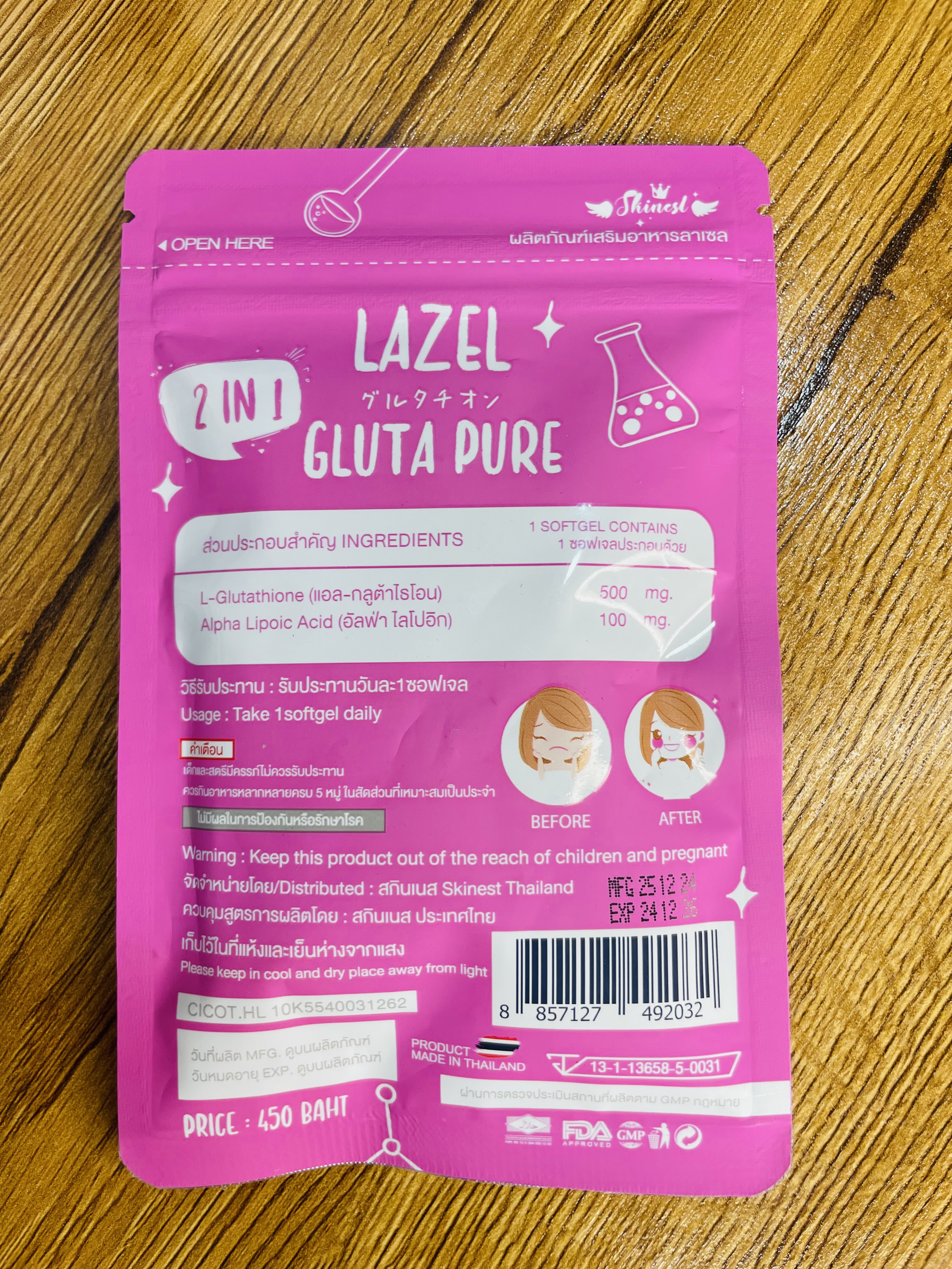 سفید کننده لزل Lazel gluta pure تایلندی اصل ۳۰عددی