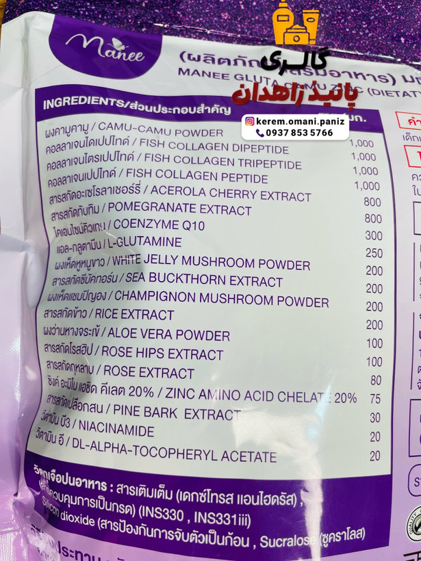 Manee Gluta Camu Zinc یک مکمل غذایی از تایلند است که مخصوص روشنسازی، جوانسازی و تقویت پوست ساخته شده. این محصول ترکیبی از گلوتاتیون، کلاژن ماهی، ویتامینها و عصارههای گیاهی قدرتمند است که به پوست درخشندگی طبیعی میدهد، لکها را کمرنگ میکند و شادابی و لطافت آن را افزایش میدهد.