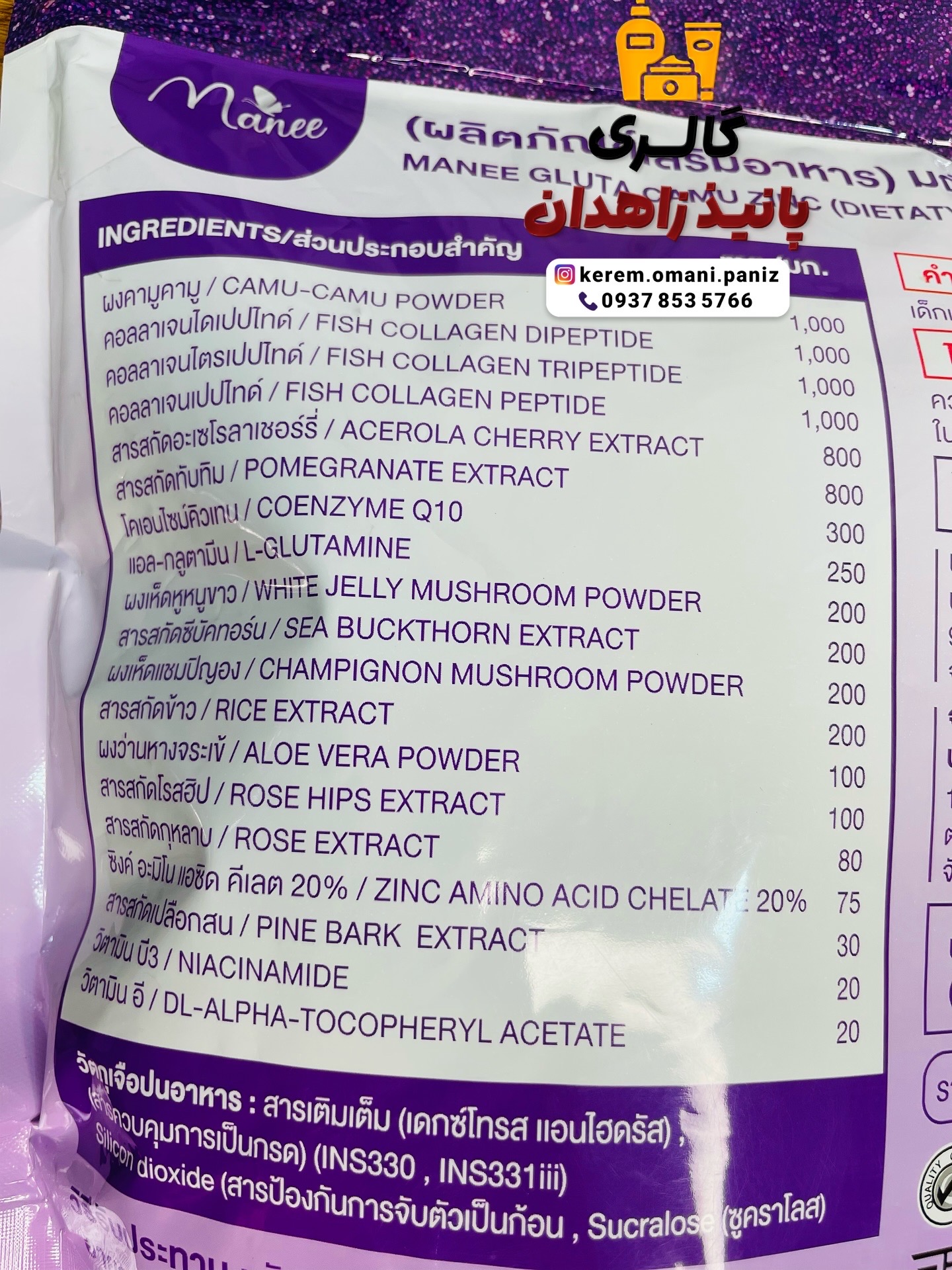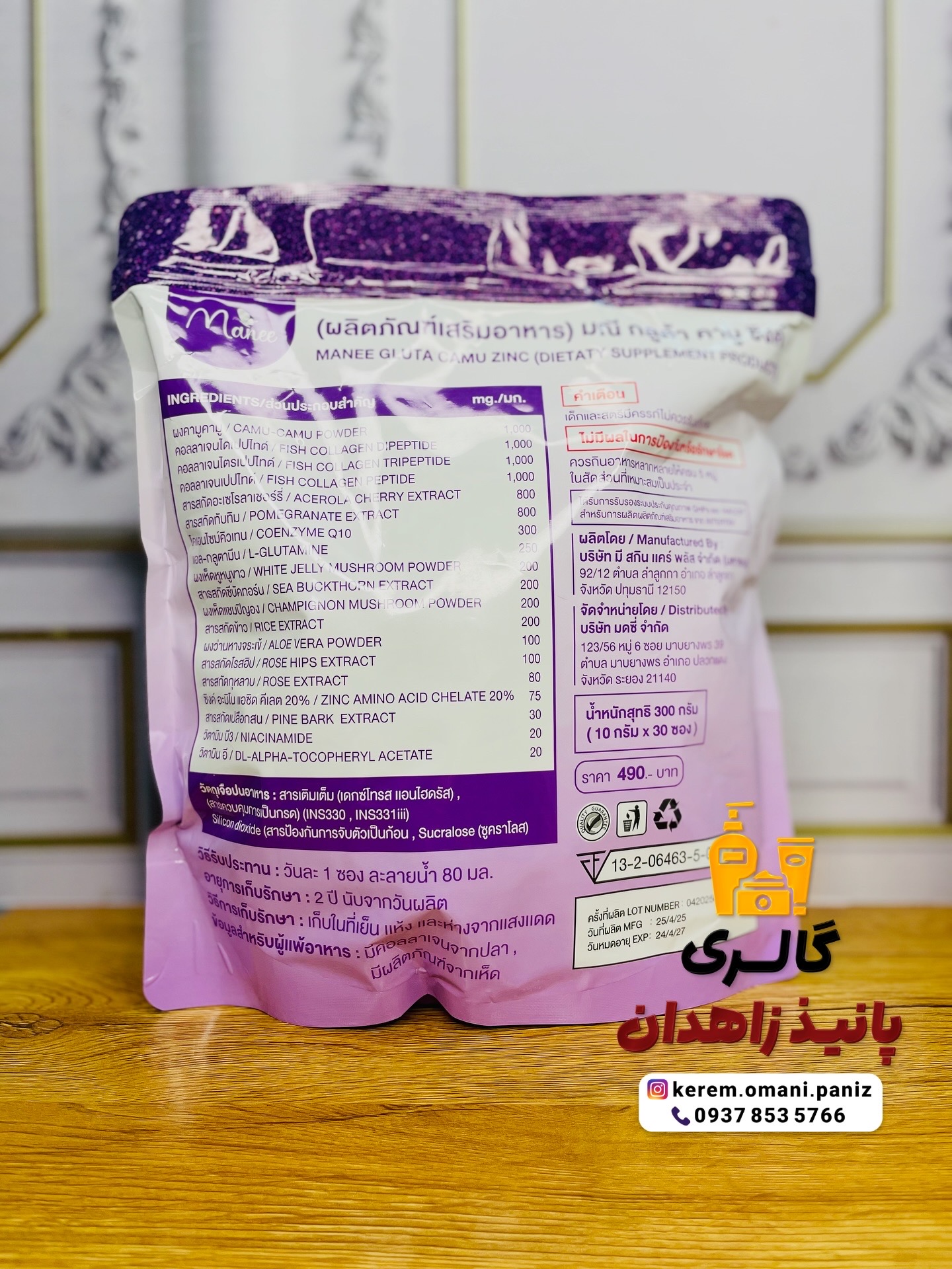 آبمیوه سفید کننده و جوانساز گلوتاتیون و کلاژن Manee Gluta Camu Zinc