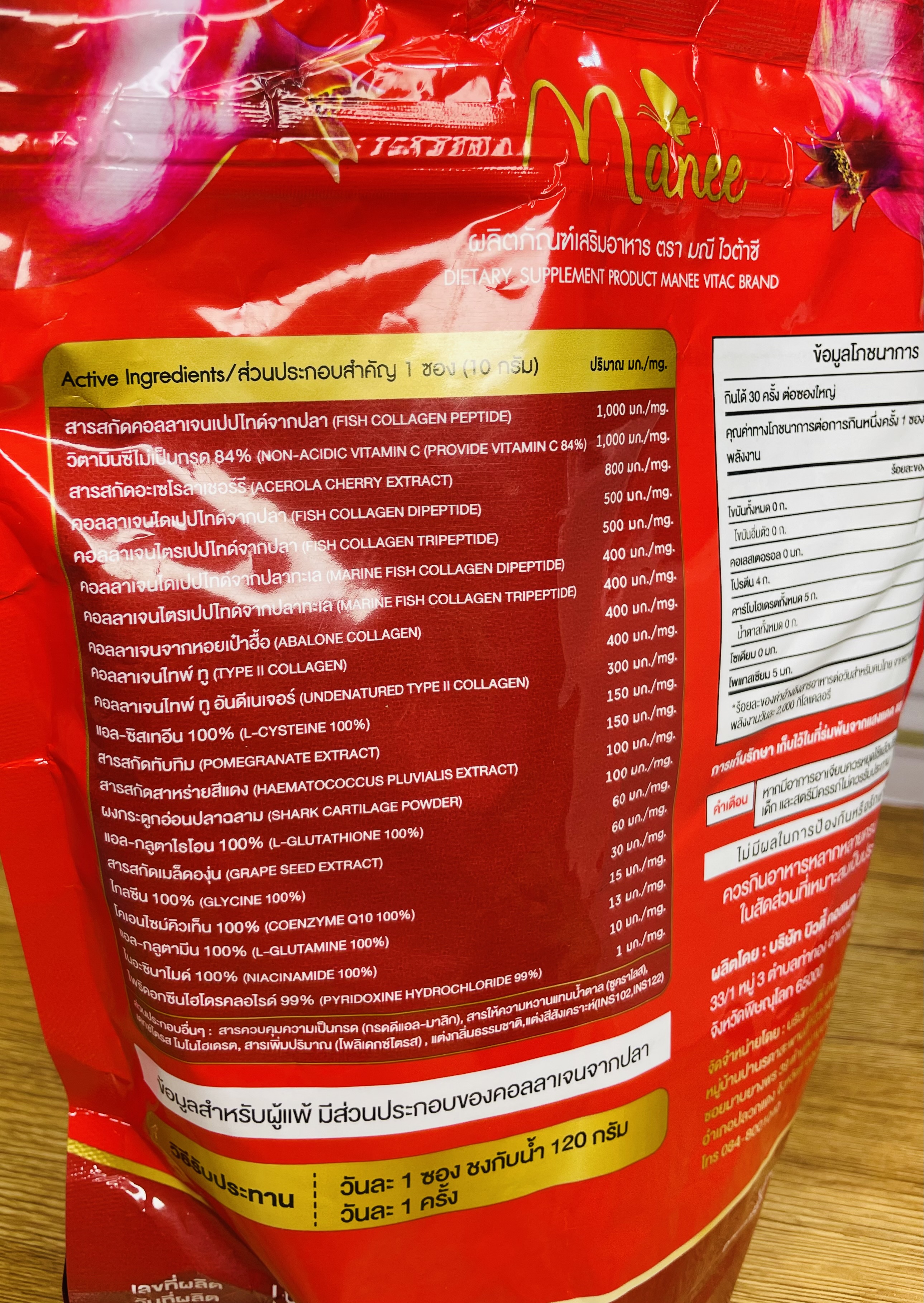 اگر به دنبال یک مکمل کامل برای روشن شدن پوست، کاهش لک، سفت شدن پوست و ضدپیری واقعی هستید، پودر زیبایی Manee Vitac یکی از قویترین فرمولهای بازار تایلند است. این محصول ترکیبی استثنایی از گلوتاتیون خالص، کلاژن ماهی، ویتامین C، آنتیاکسیدانهای کمیاب و هیالورونیک اسید دارد که پوست را از درون تقویت و بازسازی میکند.