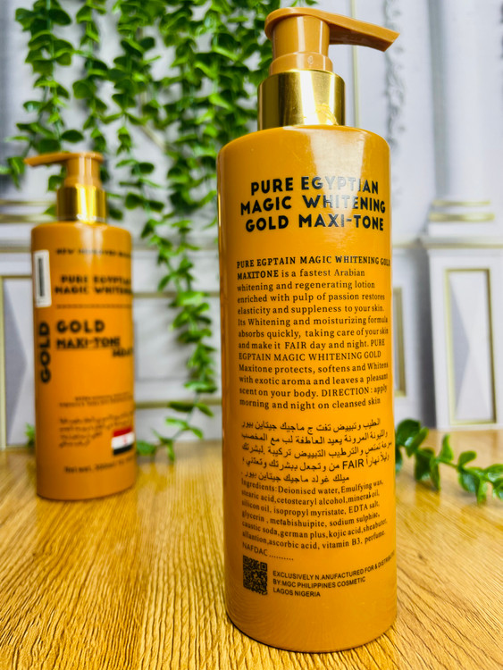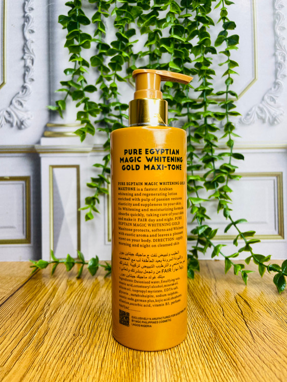 لوسیون Pure Egyptian Magic Whitening Gold Maxi-Tone یک محصول فوقالعاده برای روشنتر شدن، نرمی و شادابی پوست بدن است. این لوسیون با فرمولاسیون غنی و جذب سریع، به پوست کمک میکند تا ظاهری صاف، یکدست و درخشان پیدا کند.