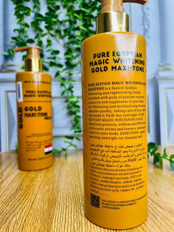 لوسیون سفید کننده و نرم کننده بدن Pure Egyptian Magic Whitening Gold Maxi-Tone حاوی کوجیک اسید و آربوتین