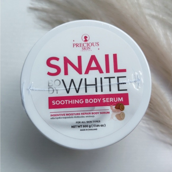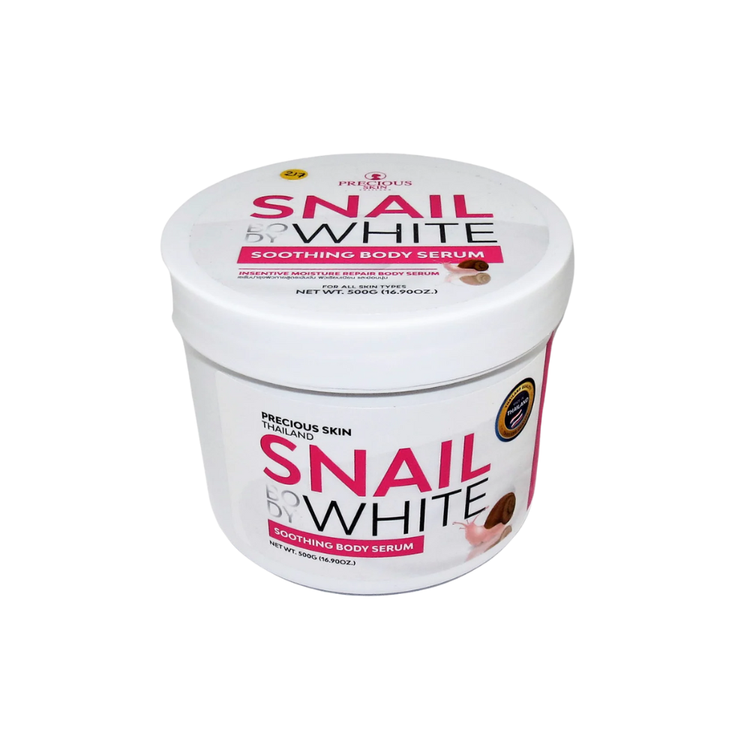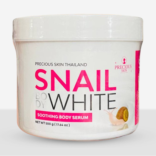 سرم صورت و بدن SNAIL BODY WHITE از برند معتبر Precious Skin Thailand یک سرم غلیظ و تقویتکننده است که با فرمولاسیونی غنی از عصاره حلزون، AHA، آلفا آربوتین و فیلتر محافظتی UV طراحی شده تا بهطور همزمان پوست را روشن، شفاف، نرم و جوان کند.