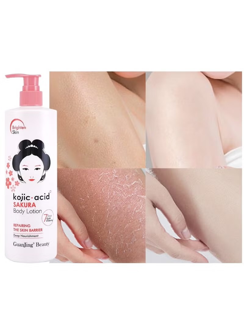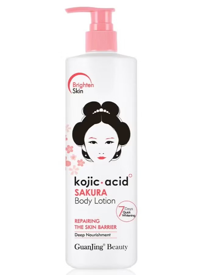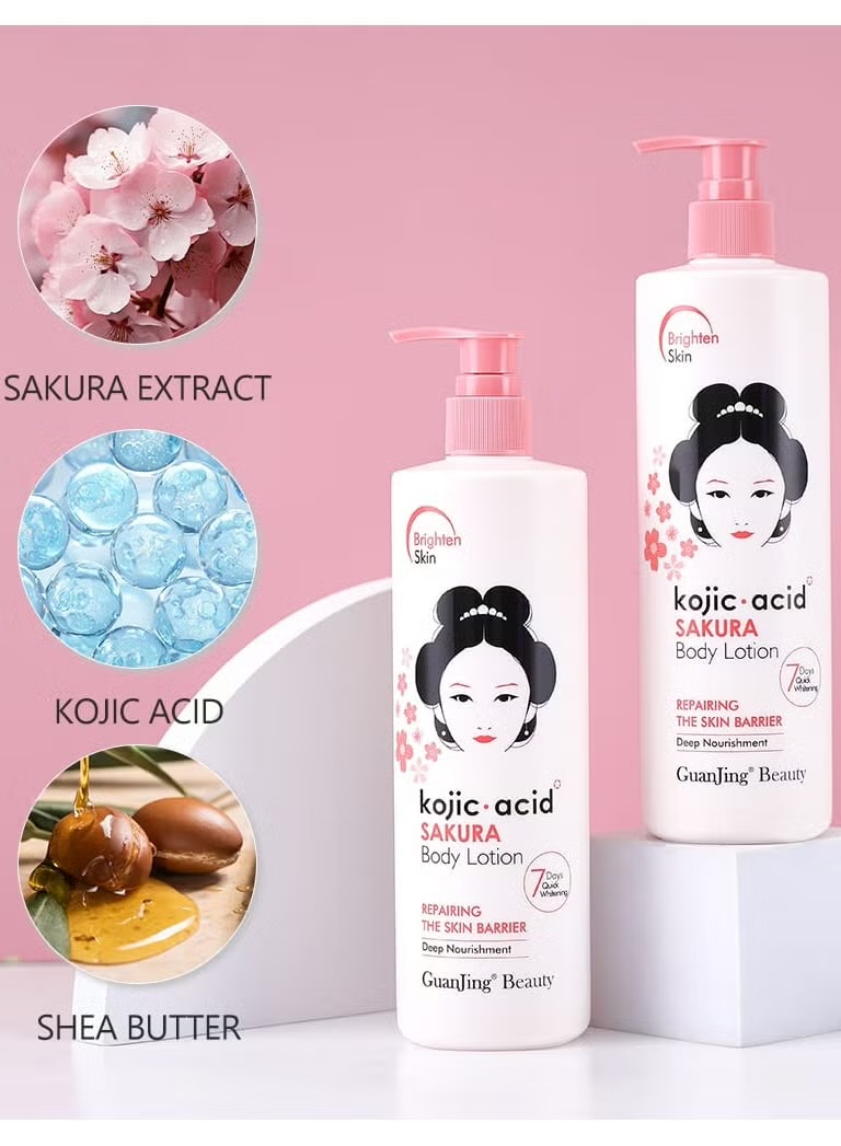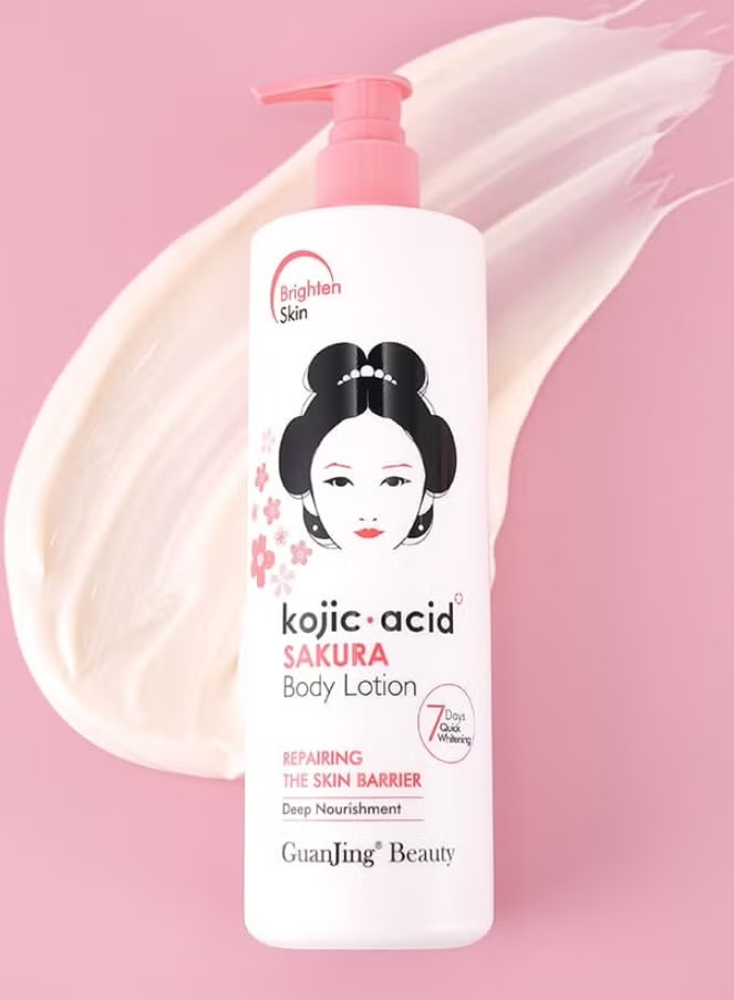 لوسیون سفید کننده و مرطوب کننده و خوشبو کننده پوست کوجیک اسید با رایحه شکوفه های ساکورا و حجم ۴۸۰گرم
