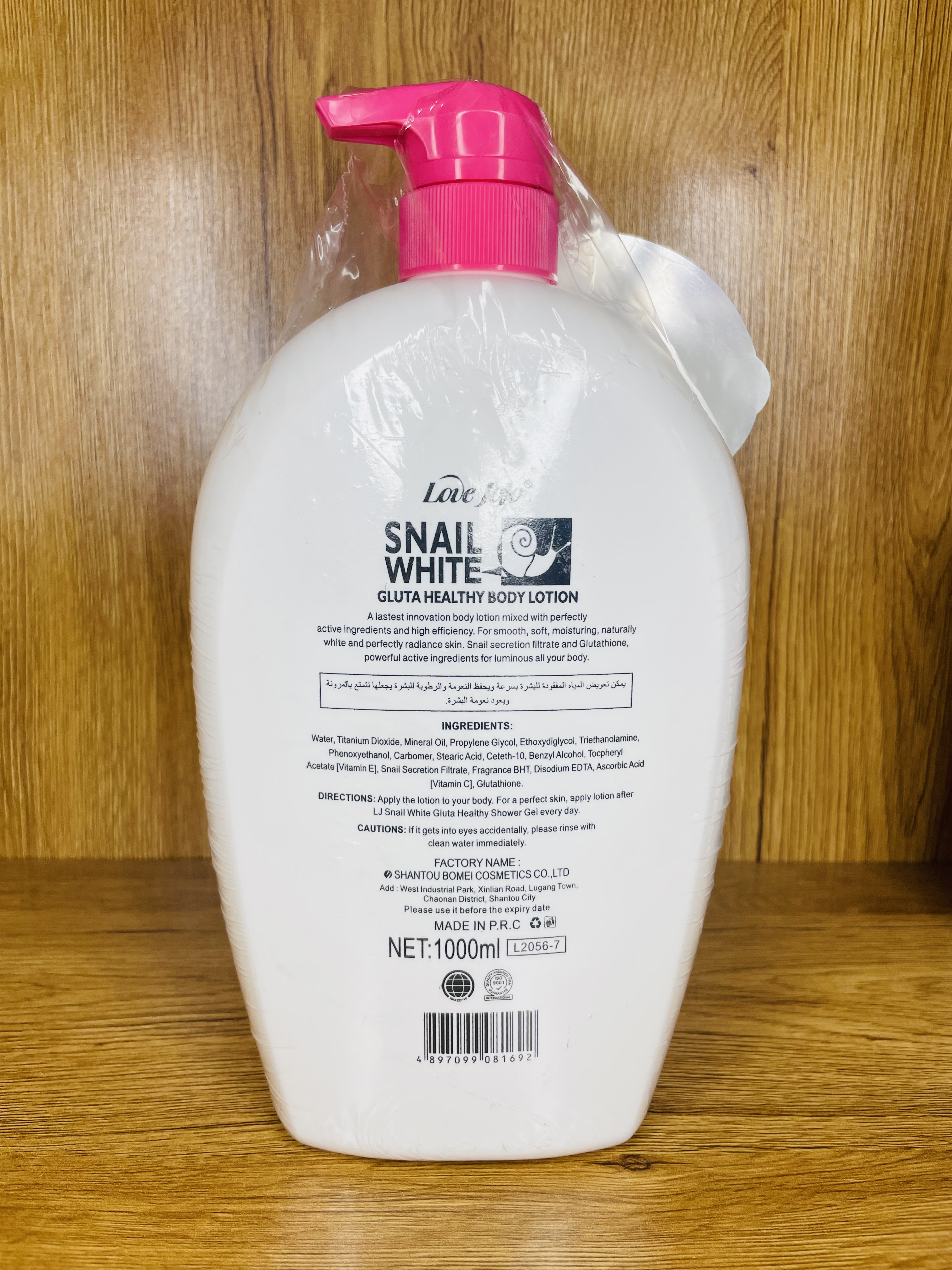 لوسیون سفید کننده 🐌 SNAIL WHITE GLUTA HEALTHY BODY LOTION از برندlove jojo حجم ۱۰۰۰میل