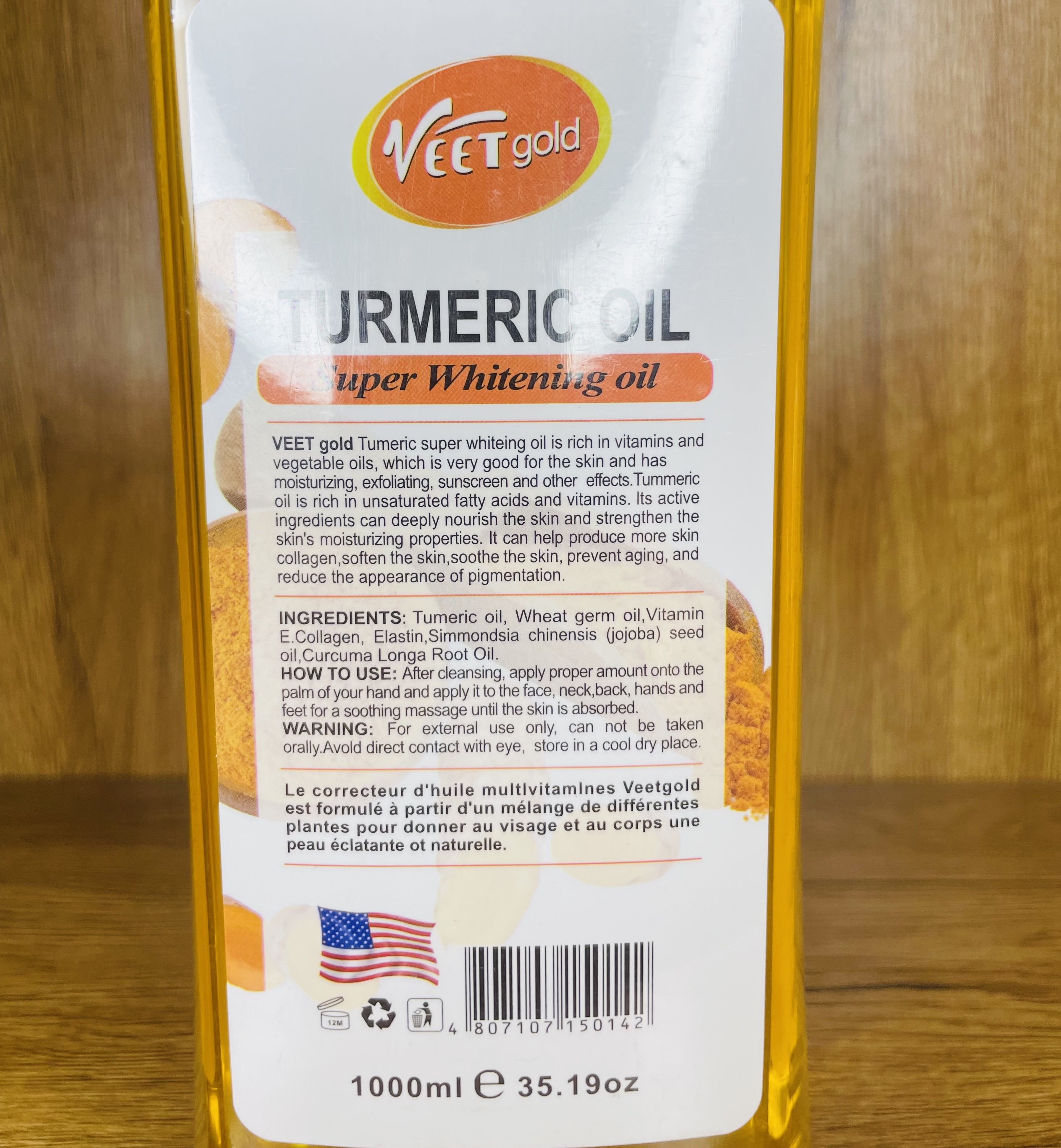 روغن سفید کننده فوق العاده زردچوبه Veet Gold آمریکایی ۱۰۰۰میل veet gold super whitening turmeric oil