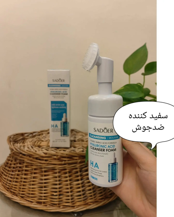 فوم براش دار هیالورونیک اسید سادور SADOR خواص فوم براش دار هیالورونیک اسید مرطوب کننده و آبرسان پاک کننده عمیق پوست روشن کننده پوست ضد جوش قوی ایجاد شفافیت و لطافت بی نظیر کنترل چربی پوست شاداب کننده پوست مناسب انواع پوست مناسب استفاده روزانه این محصول یه شوینده ملایم و فاقد مواد صابونی هستش که اصلا باعث خشک شدن پوست نمیشه و از جوش زدن جلوگیری میکنهو تمام چربی و مواد آرایشی رو تمیز میکنه حجم: ۱۲۵ میل