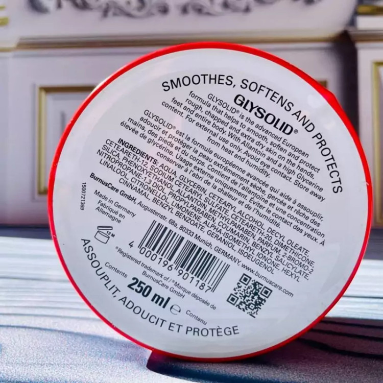 برند گلیسولید Glysolid مرطوب کنندگی بسیار قوی مناسب انواع پوست ( آقایان و بانوان ) مقابله با ترک دست و پا ضد عفونی کننده شفاف کننده نرم کننده ترمیم کننده پوست بدون عطر بدون رنگ های مصنوعی مضر درمان خشکی و اگزما